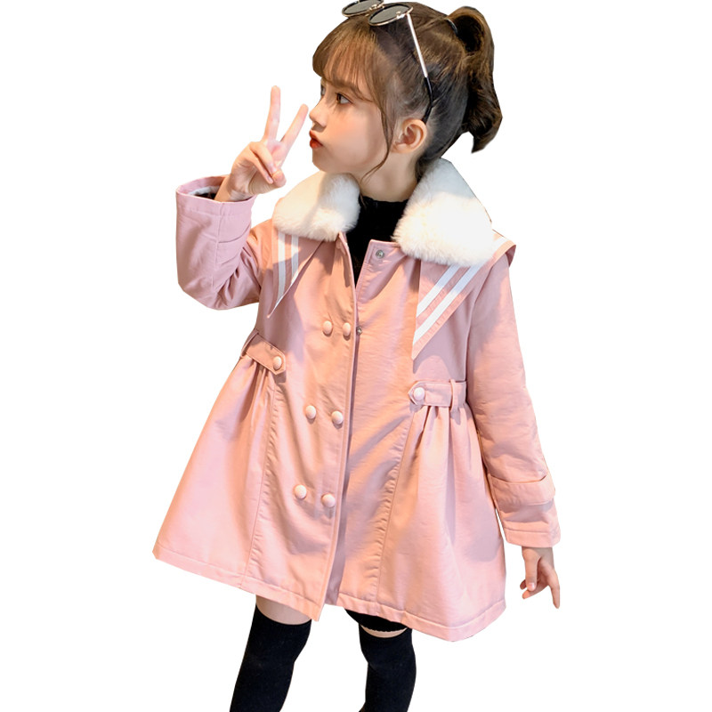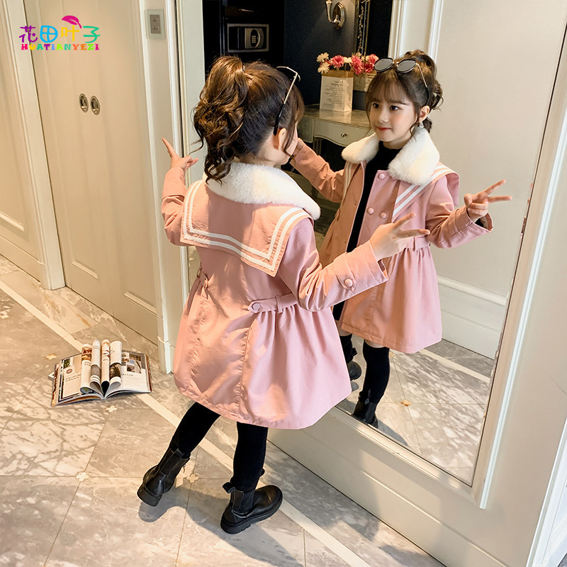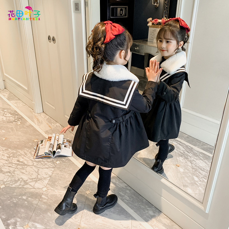 Girl Glint Jacket Autumn Winter 2021 New Foreign Pie Children Thickening Medium Long Version Pie Overcomes Big Child Clip Cotton Winter Dress