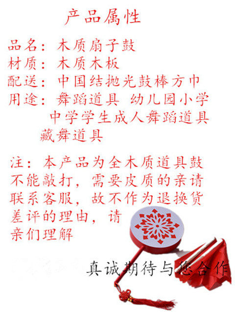 Fan drum children's heart drum dance props Tibetan dance drum hot drum children's performance clothing Taiping daughter drum props 23cm