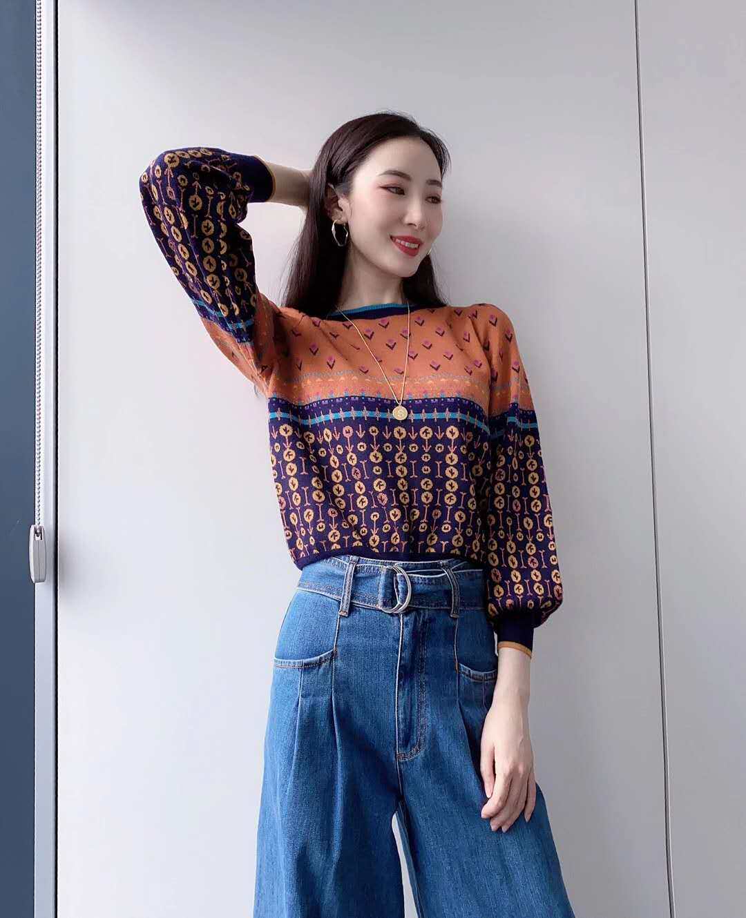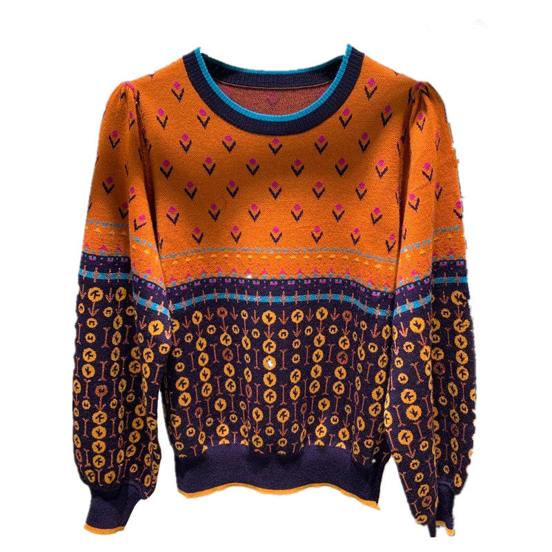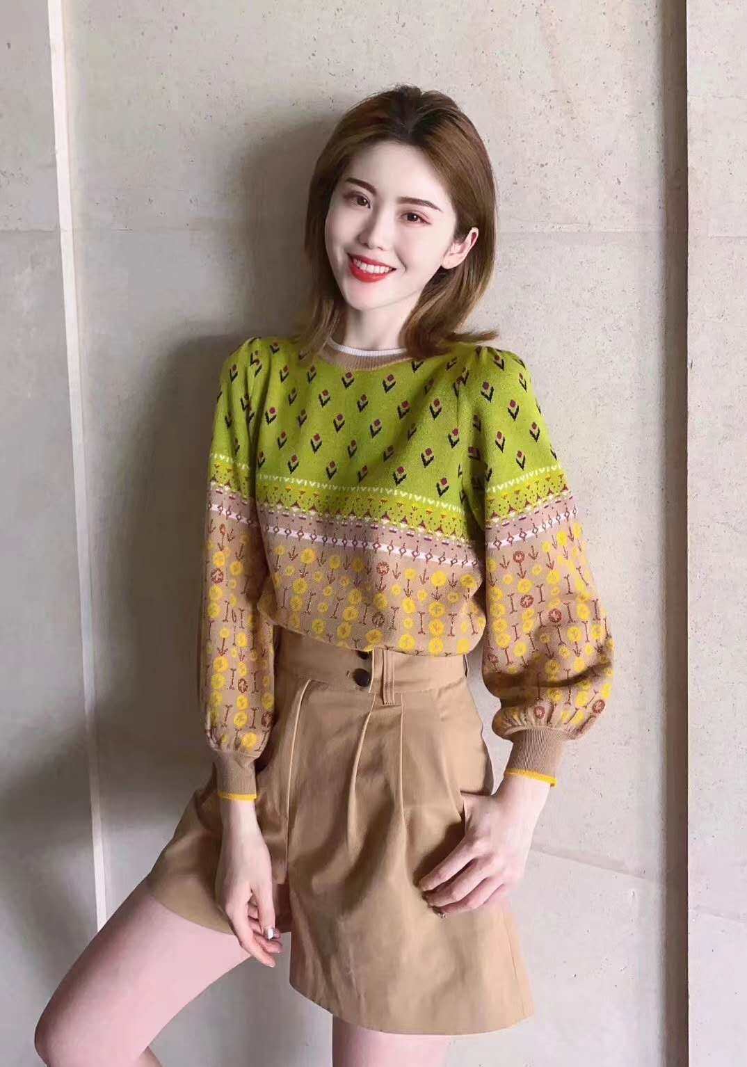 Year Amasch New Special 2022 Spring Autumn New Special Cabinet Collared Jacquard Craze Lantern Sleeves Stitch Sweater Sweater