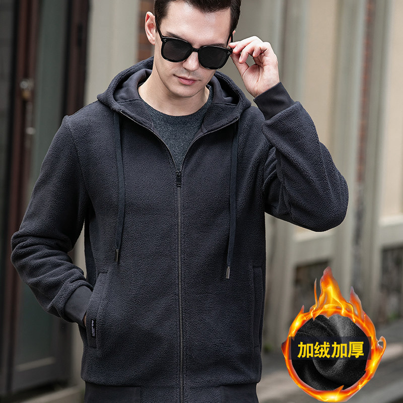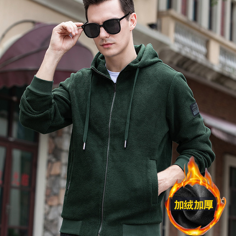 Men's coat autumn and winter 2022 new polar fleece cotton coat mid-length plus velvet thickened trendy windbreaker for middle-aged men