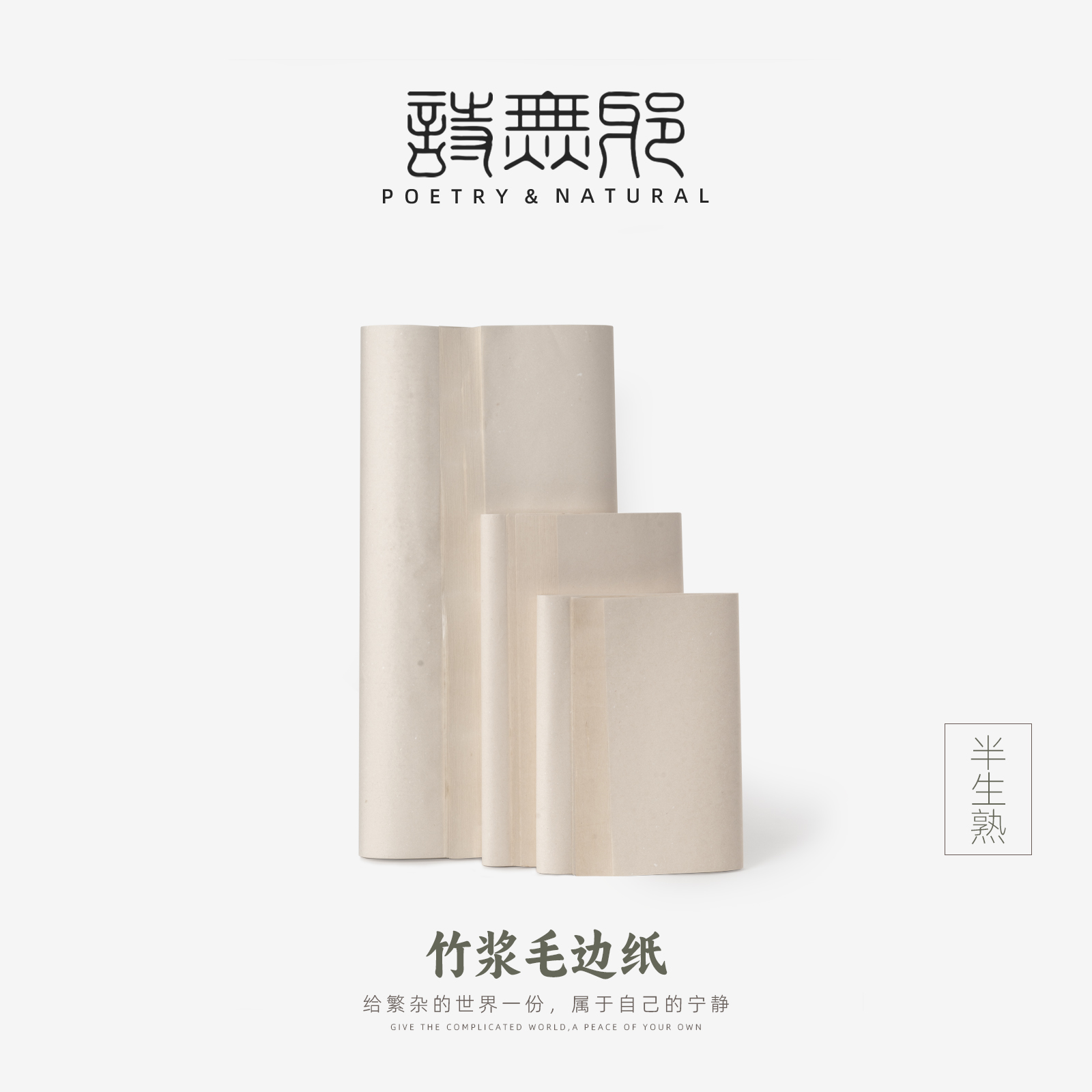 (Book Bamboo) Handmade bamboo pulp wool edge paper Calligraphy Paper Calligraphy Xuan Paper Four Feet Half Raw Cooked Brush Poetry No Evil Room-Taobao