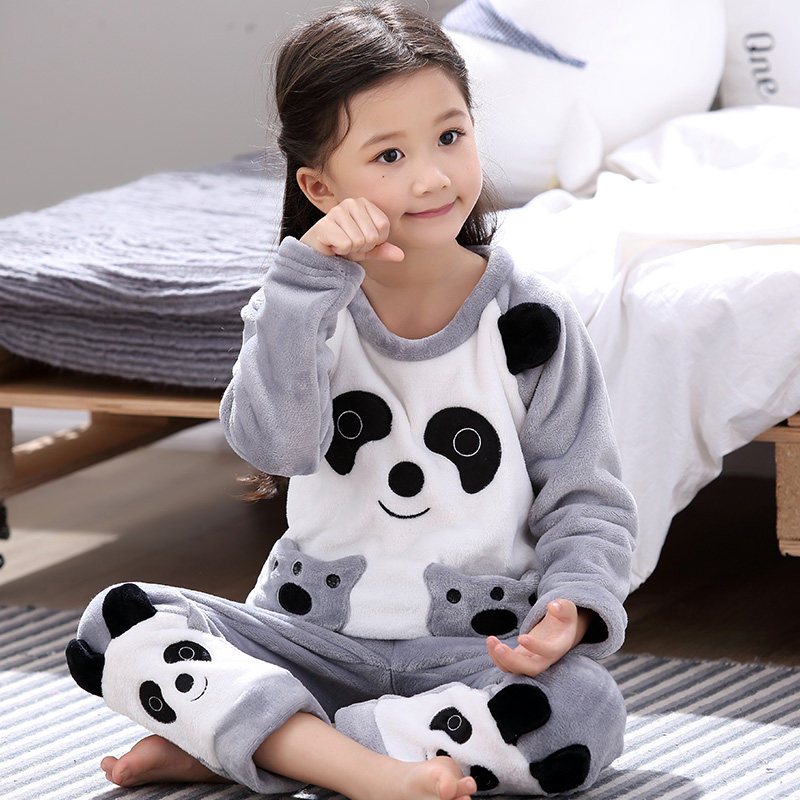 Winter children's pajamas girls plus velvet thickened flannel children's autumn and winter girls' coral velvet suit