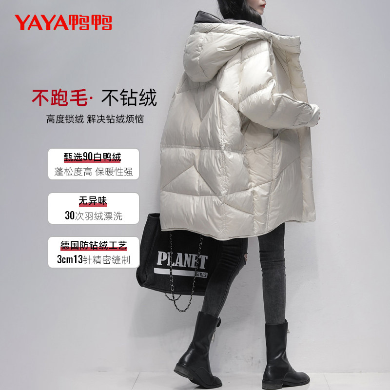 Duck duck cocoon-shaped down jacket famous brand white duck down 2022 new women's large size loose mid-length high-end hooded trend
