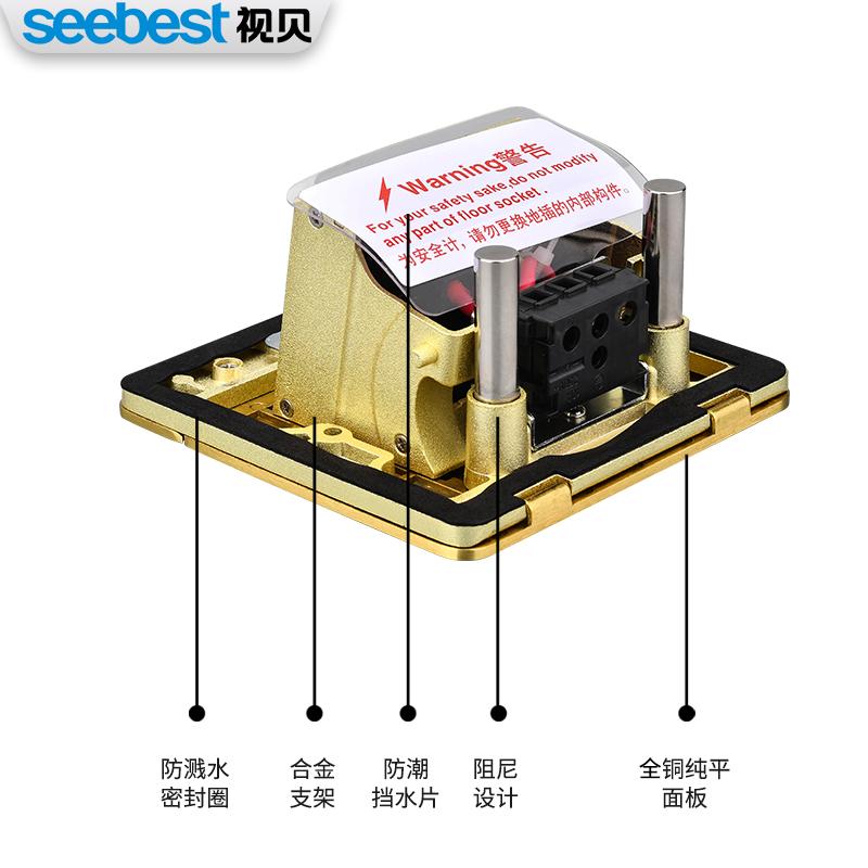View Bay Socket Five Holes Quick Bounce Type Damping Full Copper Waterproof Floor Ground 5 Holes Power Hidden switch