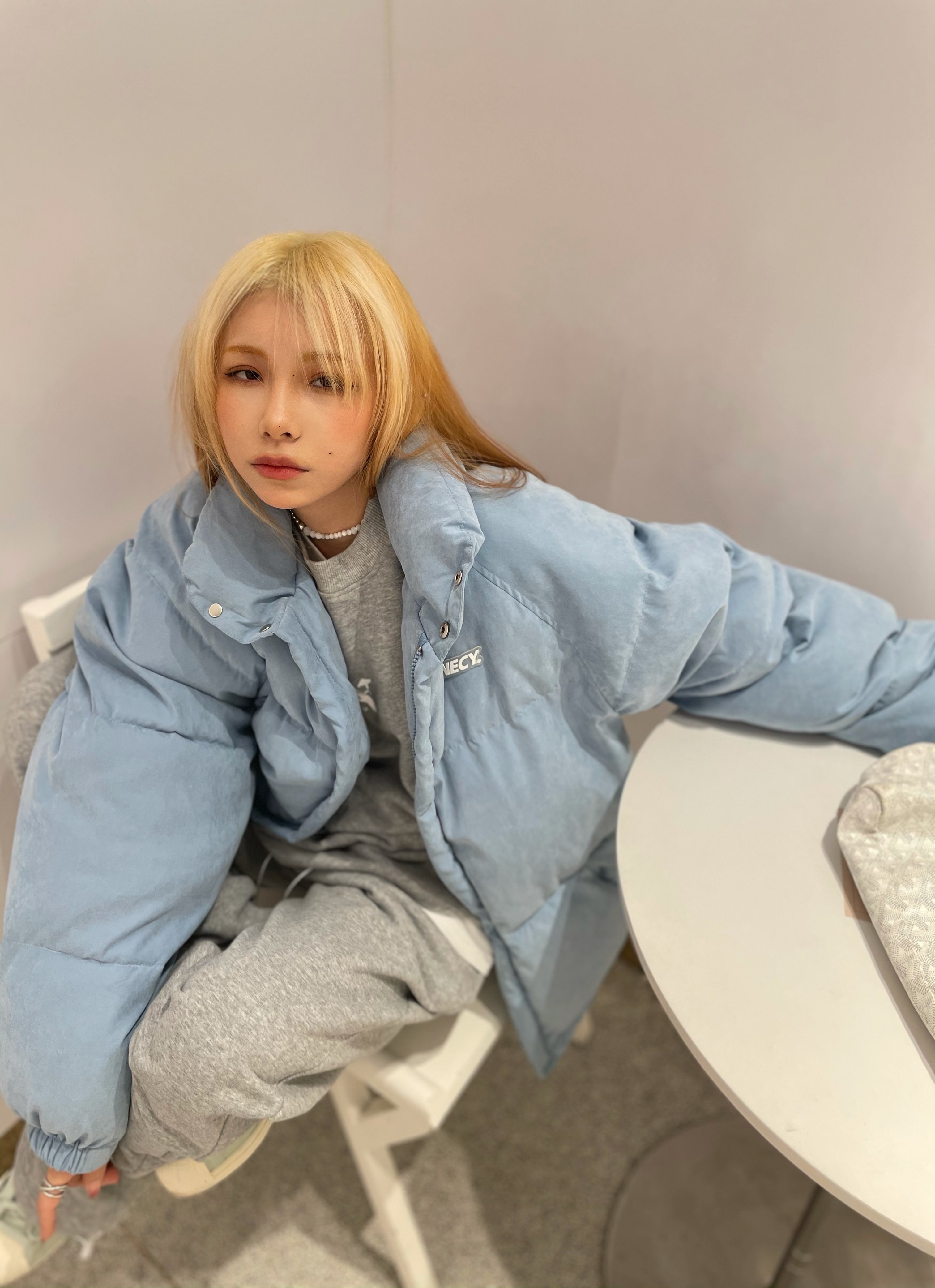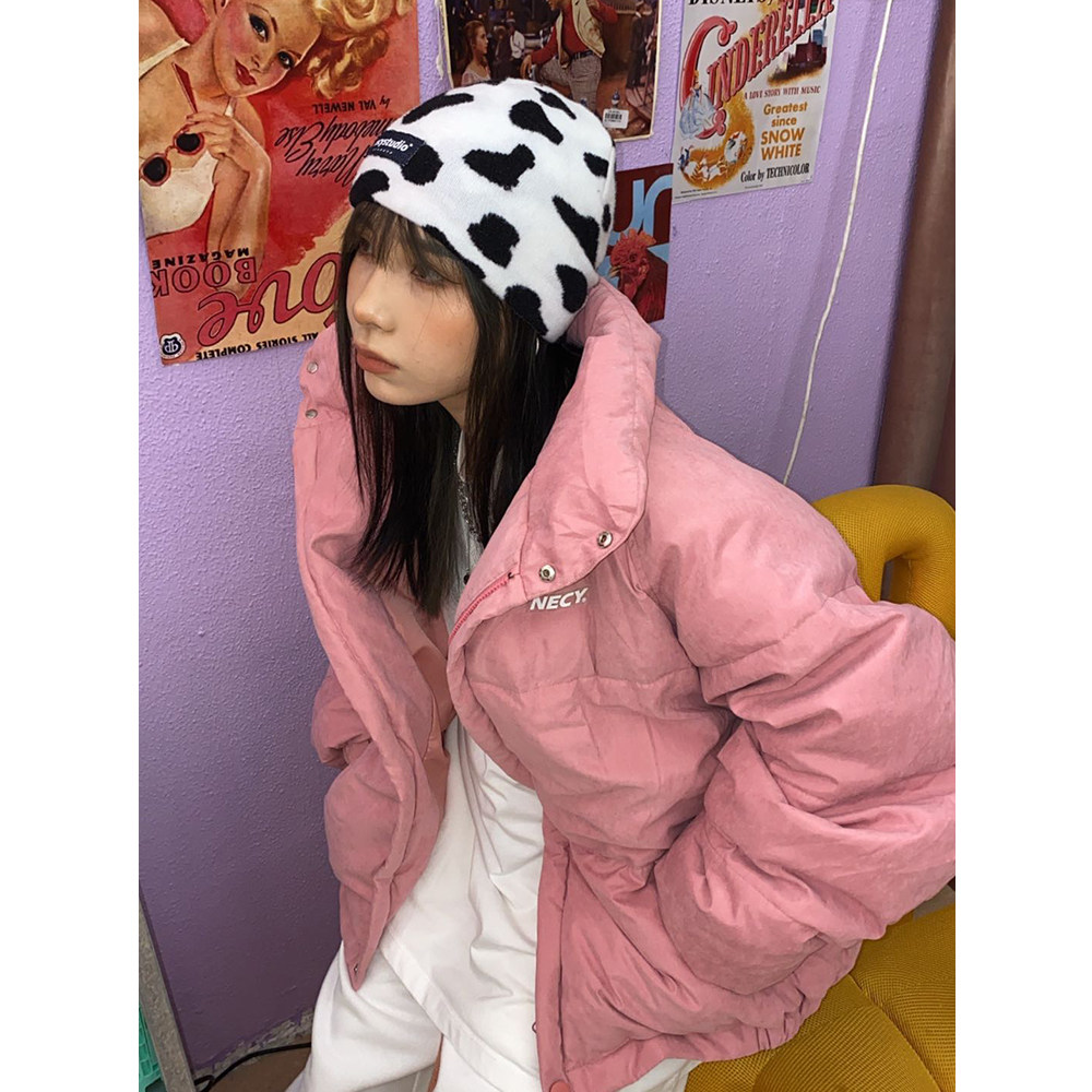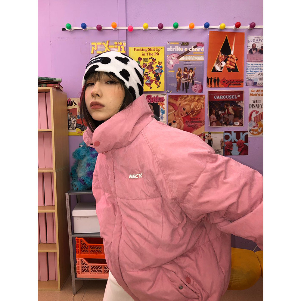 NECY campus style two-color webbing suede straight collar down jacket female couple trendy warm bread jacket winter