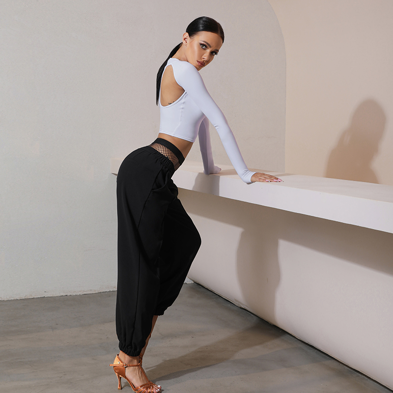 ZYM20817 (Foul hottie)pants Latin dance female adult dance practice pants Chic mesh waist