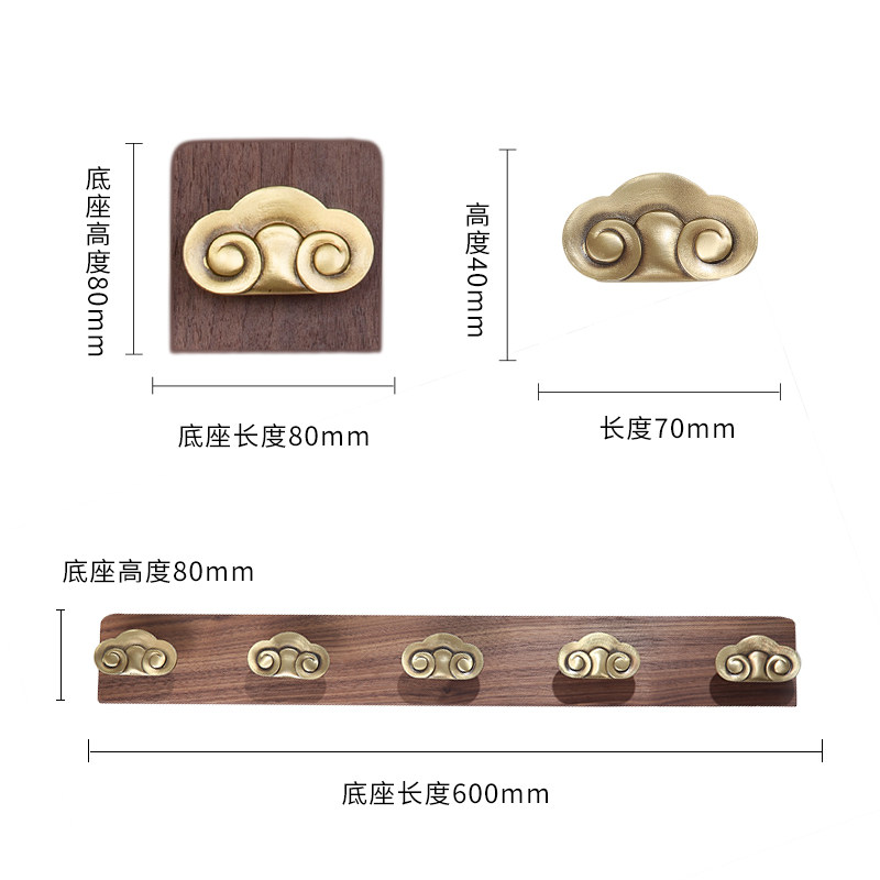 Ruyi Xiangyun Chinese Pure Copper Creative Hanging Clothes Hook Black Walnuts Wood Genguan Art Hooks Net Red Light Luxury Clothes Hat Rack