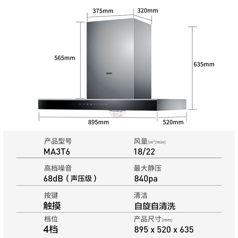 Haier MA3T6 range hood household kitchen large suction top suction rental house small range hood off row
