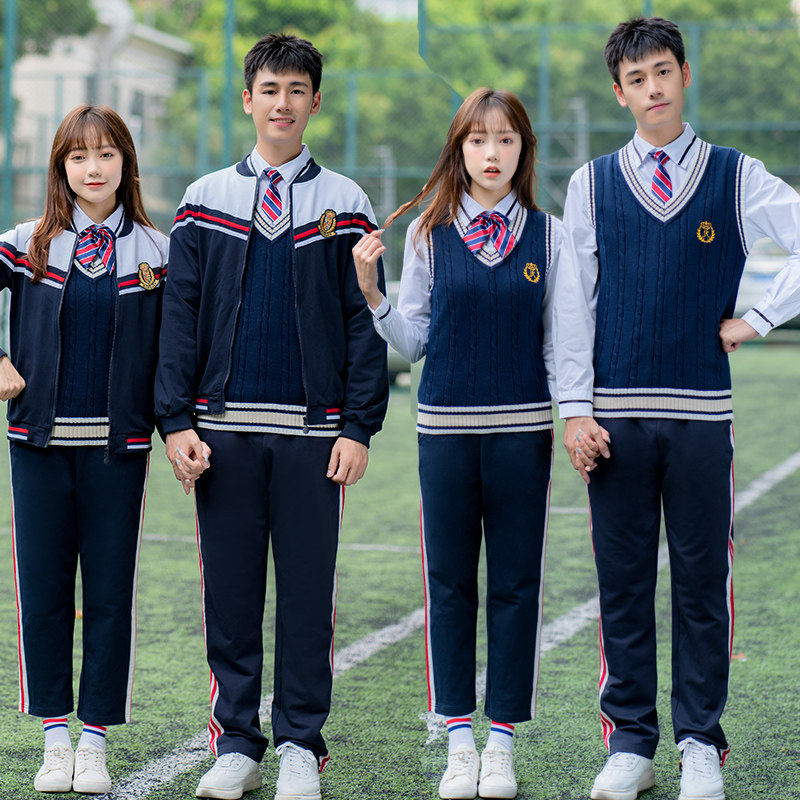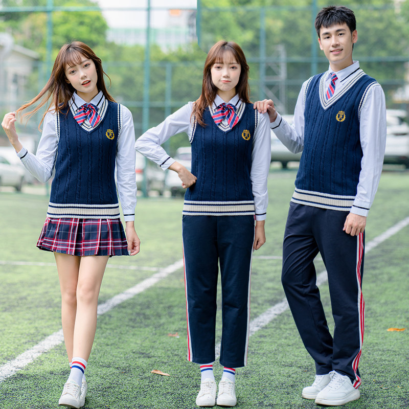 School uniform suit middle school students sports meeting opening ceremony class uniform junior high school students autumn and winter vest sweater three-piece set