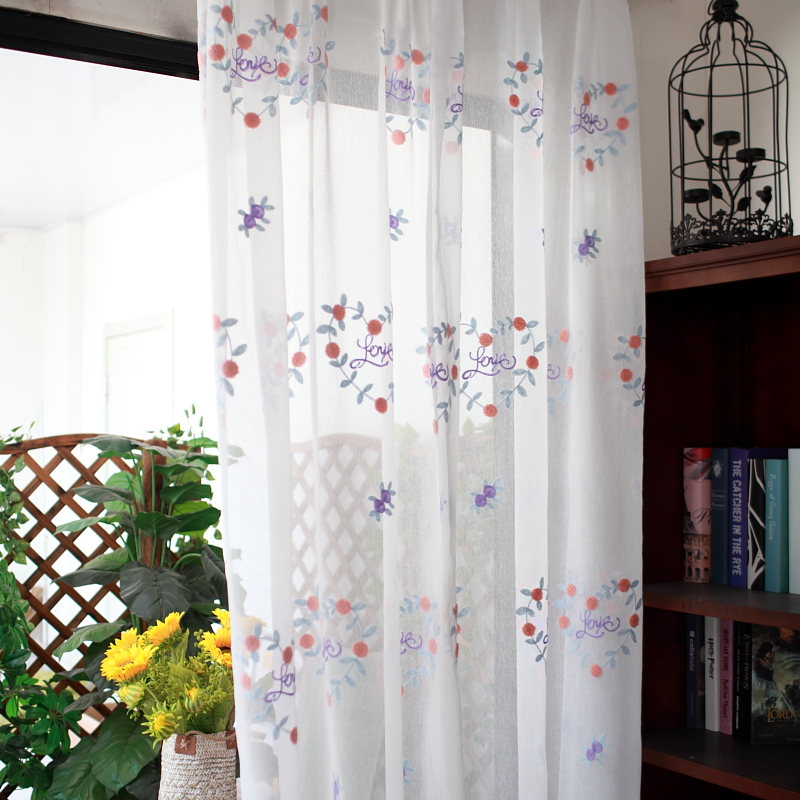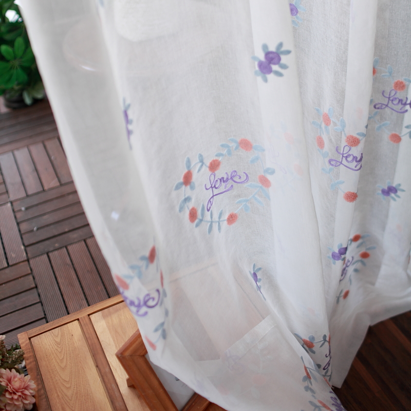 Custom curtains Korean style beautiful love warm color living room bedroom floor-to-ceiling window bay window background finished gauze curtain