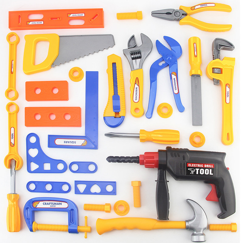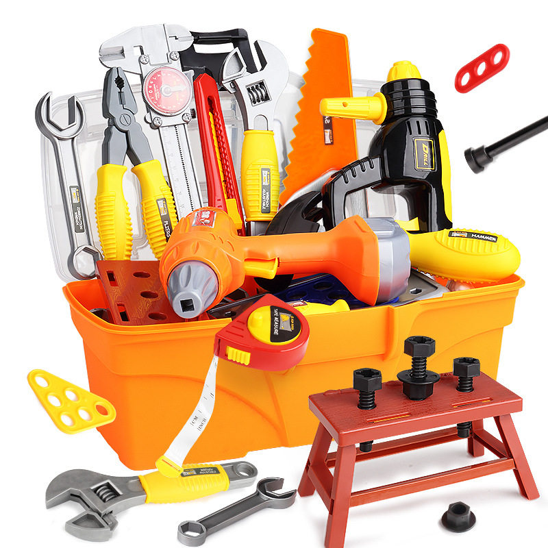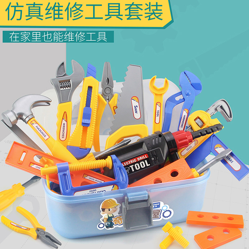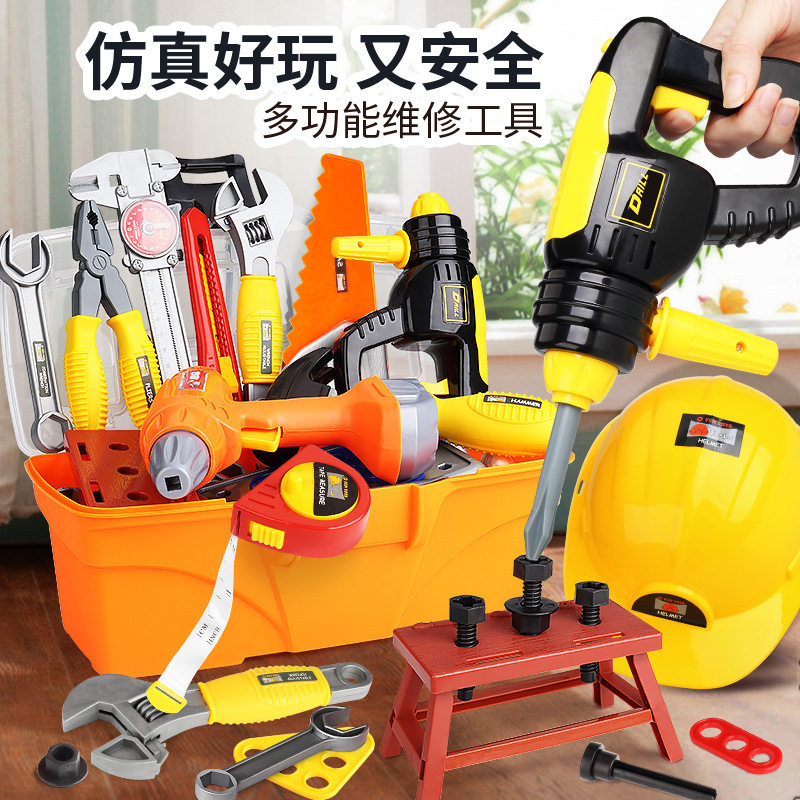 Plastic children's toy toolbox wrench tools Woodworking combination hammer Electric screwdriver set boys repair