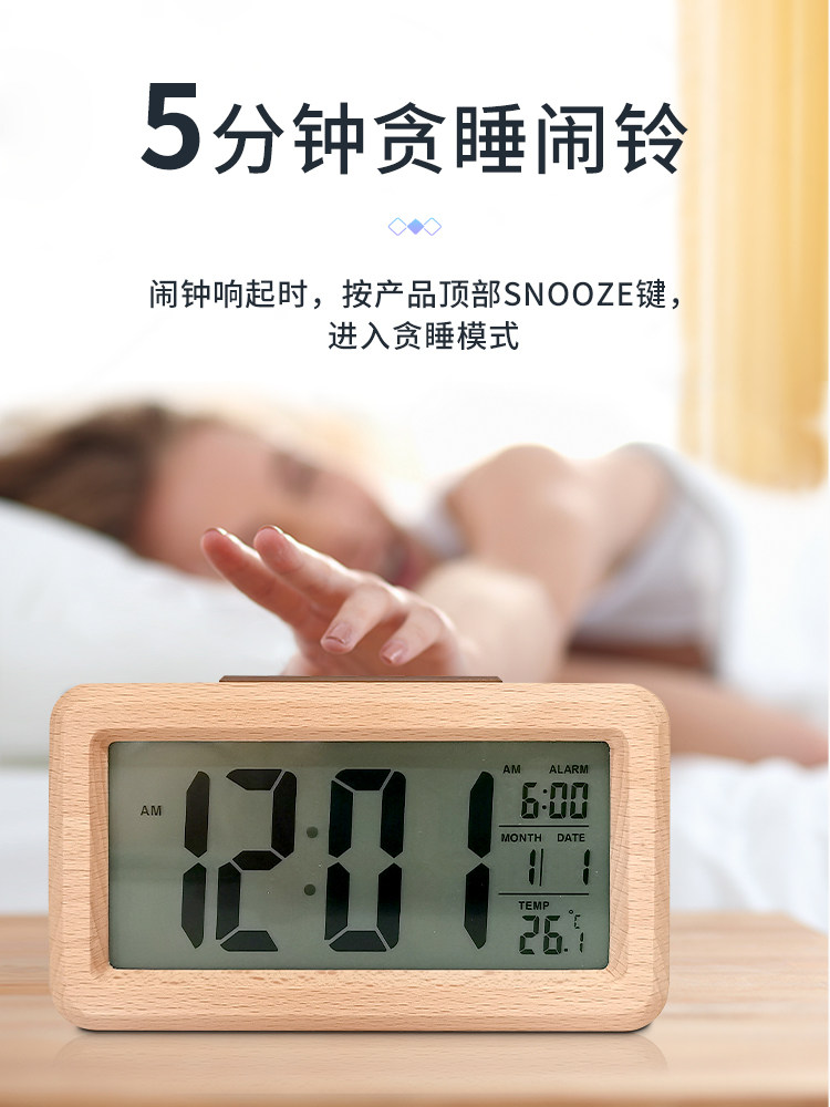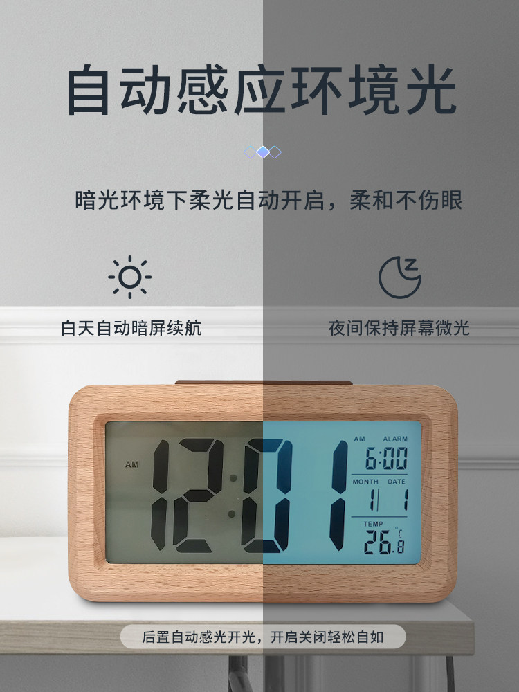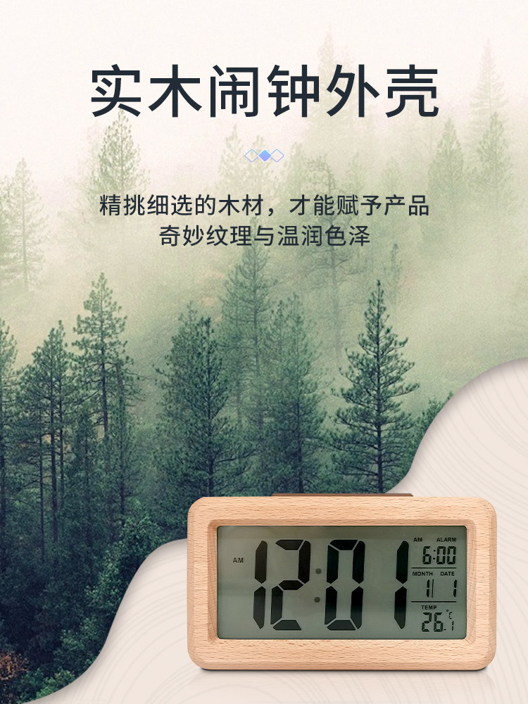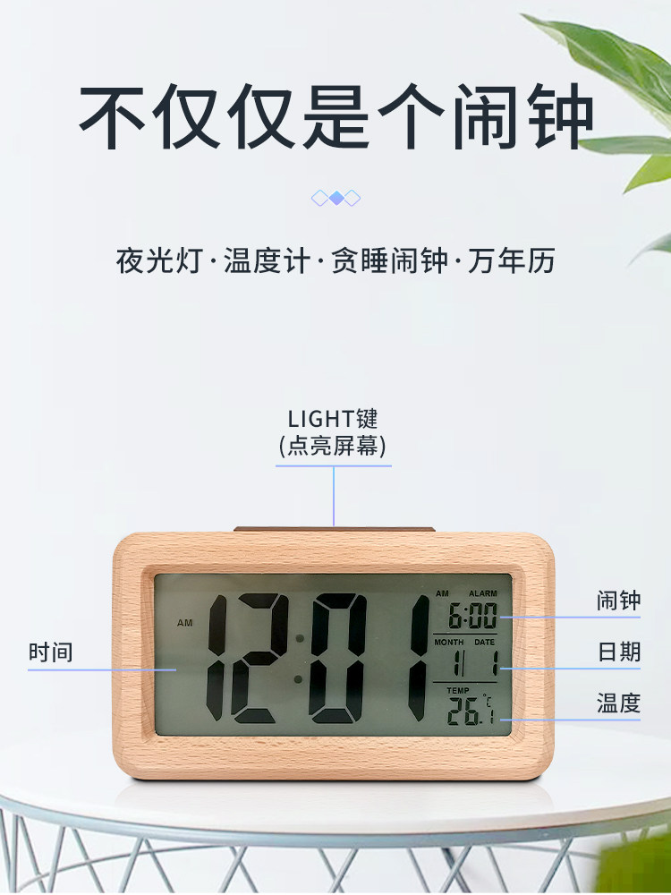 Solid wood multi-function alarm clock simple Japanese desktop digital clock student special smart wake up artifact electronic clock