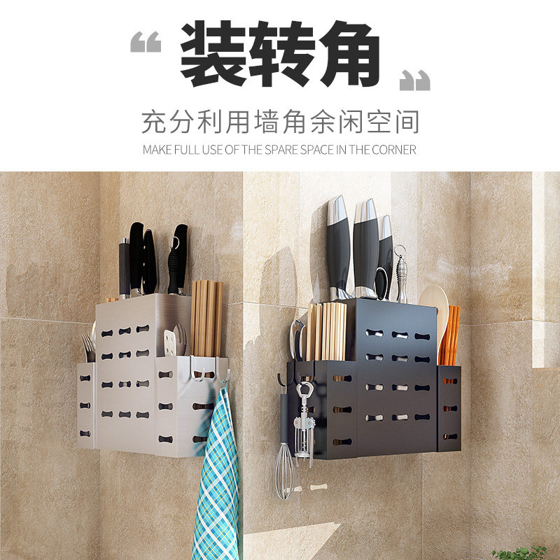 Kitchen Stainless Steel Tool Holder Shelve Wall-mounted perforated Chopstick Cage Integrated Cutter Containing Supplies Multifunction