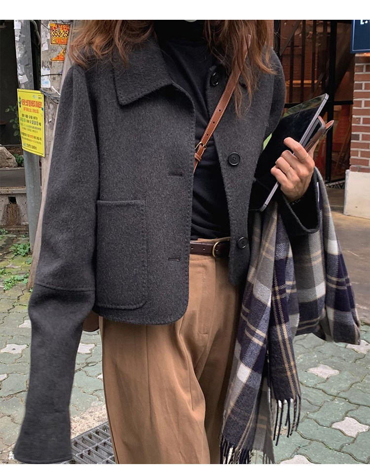 Small sub-handmade wool jacket woman short 2022 autumn winter new South Korean ins double face cashmere dresses woman
