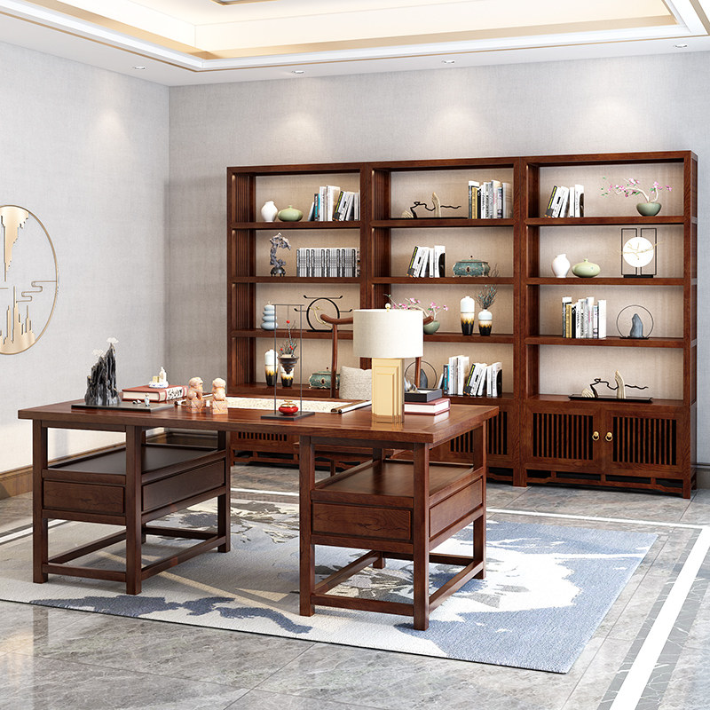 New Chinese Solid Wood Desk Home Bedroom Desk Zen Office Table Modern Computer Book Room Bookcase Combination