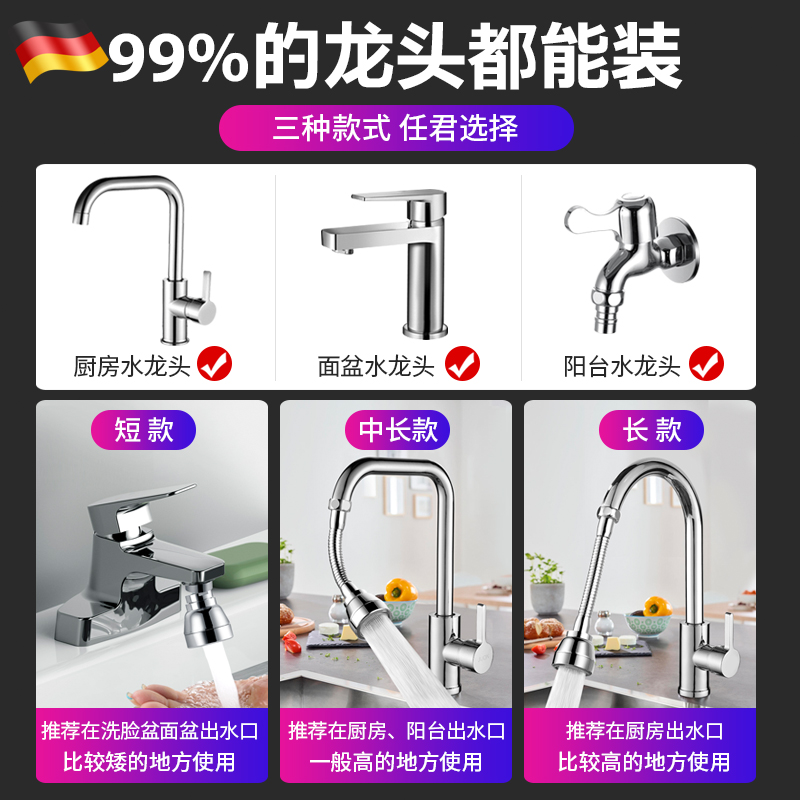 304 stainless steel three gear ● 360 ° rotation (short 6cm) 304 stainless steel three gear ● 360 ° rotation (medium and long version 15cm) 304 stainless steel three gear ● 360 ° rotation (extended version 17cm) (2 sets) short + short model ( three-speed splash-proof ◆ 360 degree rotation) (2 sets) short + medium long model (three-speed splash-proof ◆ 360 degree rotation) (2 packages) short + extended version (three-speed splash-proof ◆ 360 degree rotation) (2 sets) medium and long model + medium and long model (three-speed splash-proof ◆ 360 degree rotation) (2 packs) medium and long model + extended version (three-speed splash-proof ◆ 360 degree rotation) (2-pack) extended version + extended version (three-speed splash-proof ◆ 360 degree rotation) ↑↑ (hot and cold water faucet) ● can be purchased with the above splash-proof head ↑↑