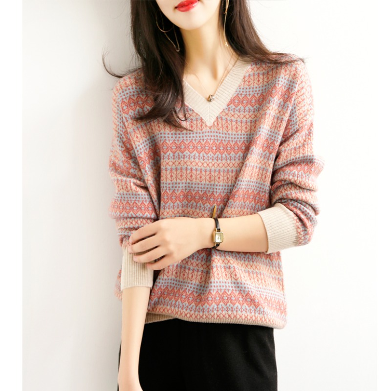 Vanhee new spring and Autumn sweater women loose outside wear pullover lazy wind wool sweater V-neck base shirt women