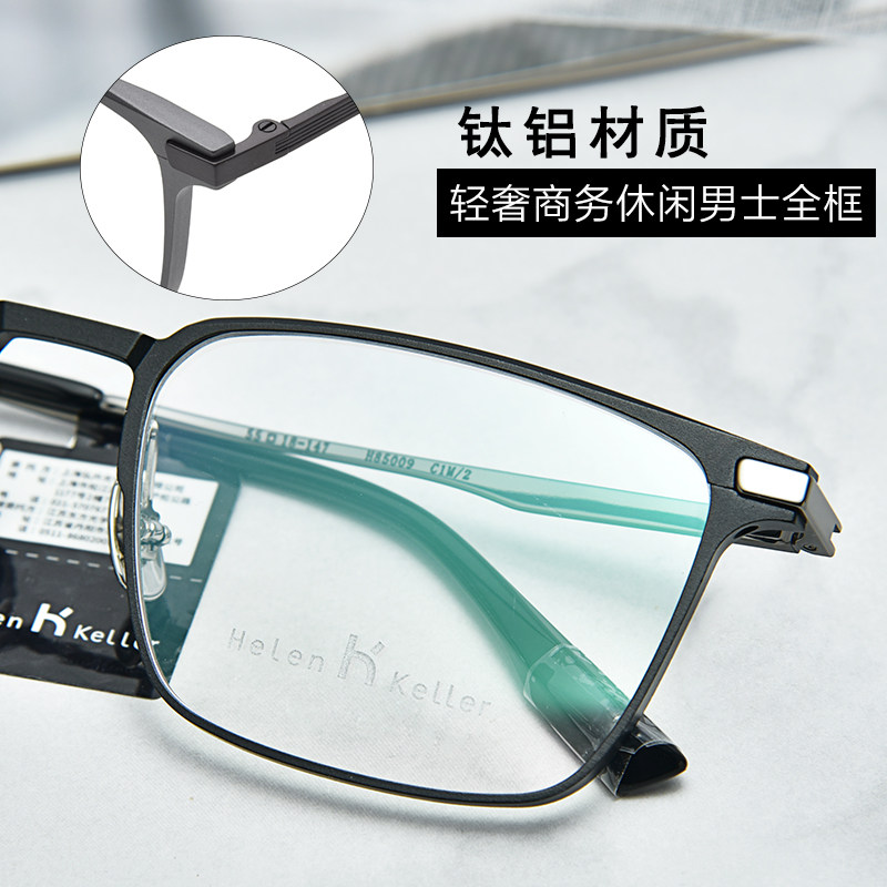 Helen Keller pure titanium full frame with myopia square polygon ultra-light hyperopia anti-blue light retro frame men's glasses