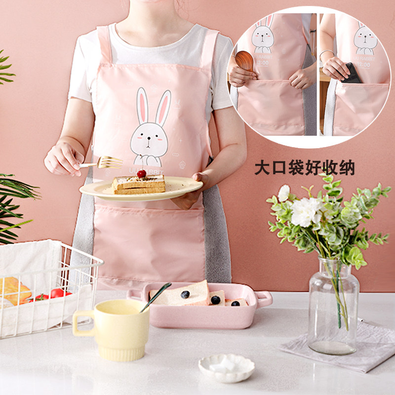 Kitchen apron waterproof and oil-proof cooking Korean version hand wipe female cute household apron