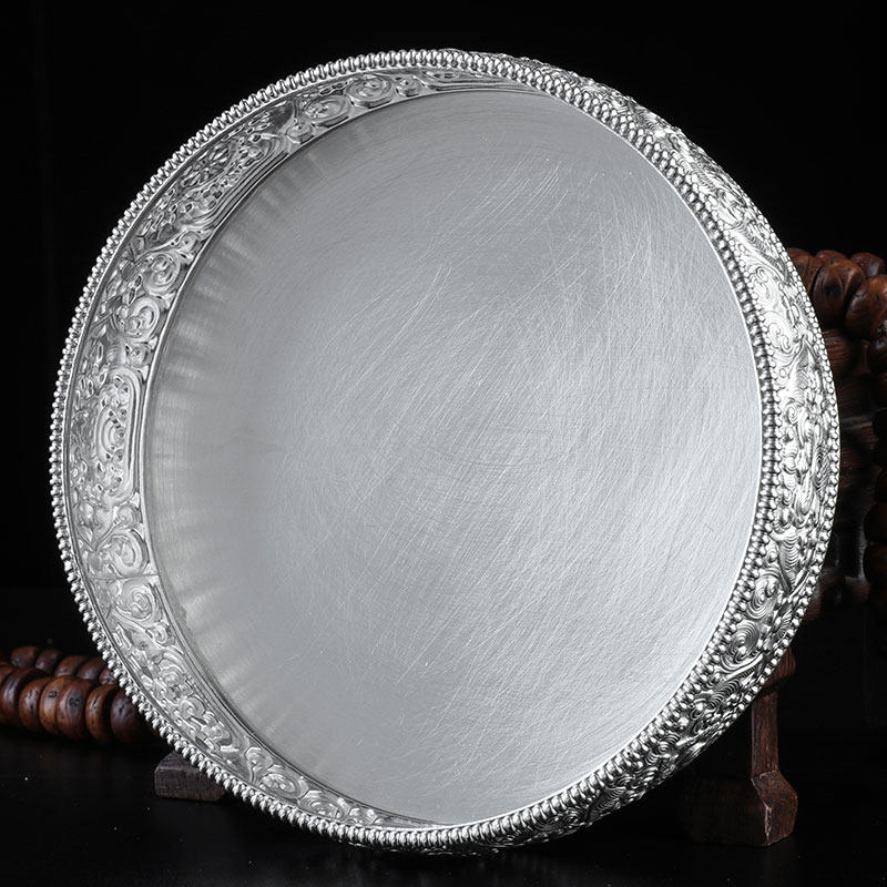 Manza plate sterling silver s990 imitation Nepal Tibetan eight auspicious Manda repair plate single base plate 14cm dedicated to Mancha Luo