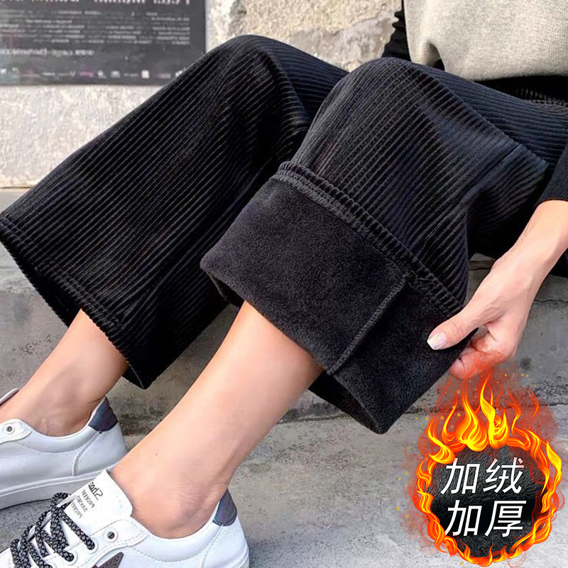 Net red pregnant women pants core and wide legs wear autumn and winter thin plug thickening vertical loose drag trousers
