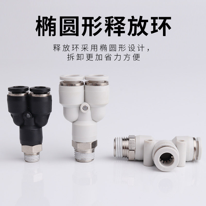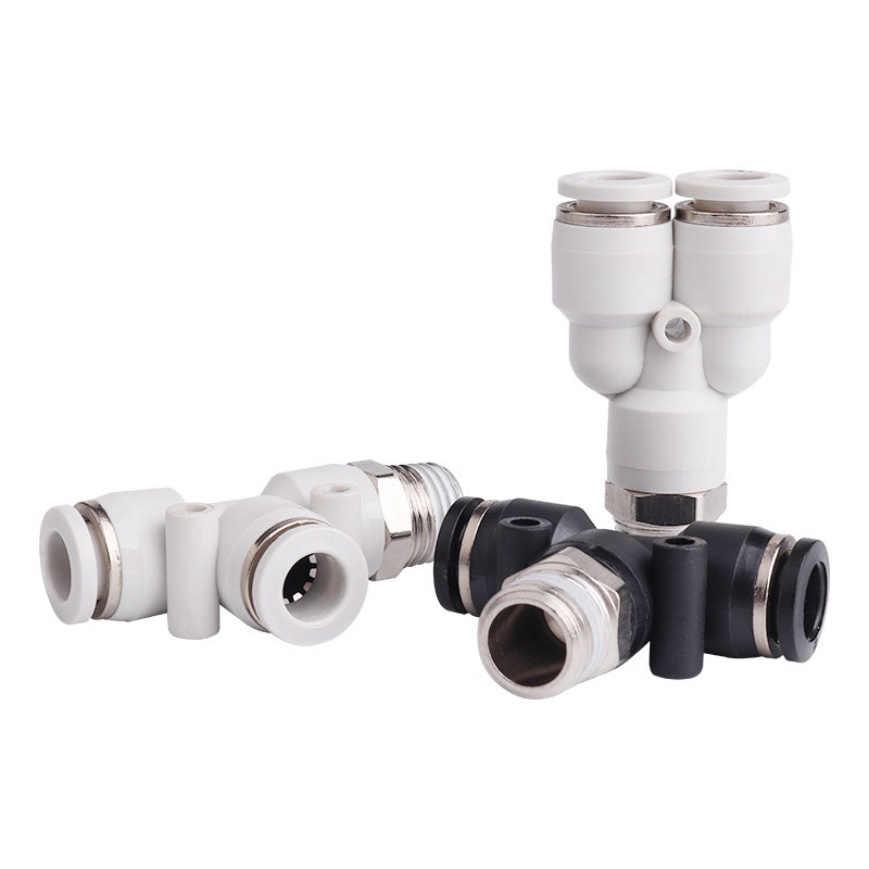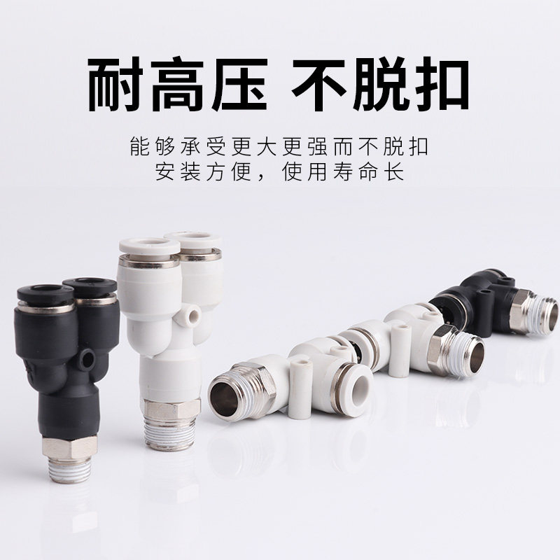 Pneumatic tracheohigh-pressure hose three-way Y type threaded belt connector Quick and quick insert butt head 4 6 8 10 12mm
