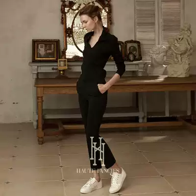 Beautiful ankle (after conception) in France designer brand autumn female black high waist thin high ankle-length pants