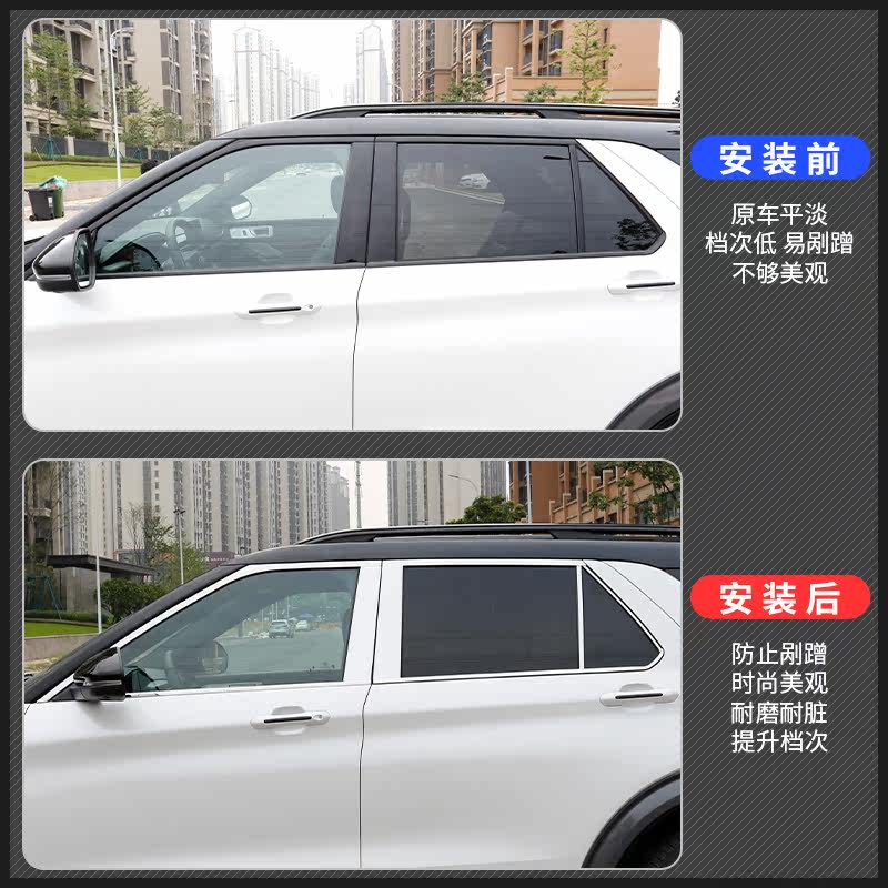 20 models of Ford Explorer special stainless steel window trim (10 pieces) 20 models of Ford Explorer special stainless steel center pillar decorative strips (6 pieces) 20 models of Ford Explorer special stainless steel