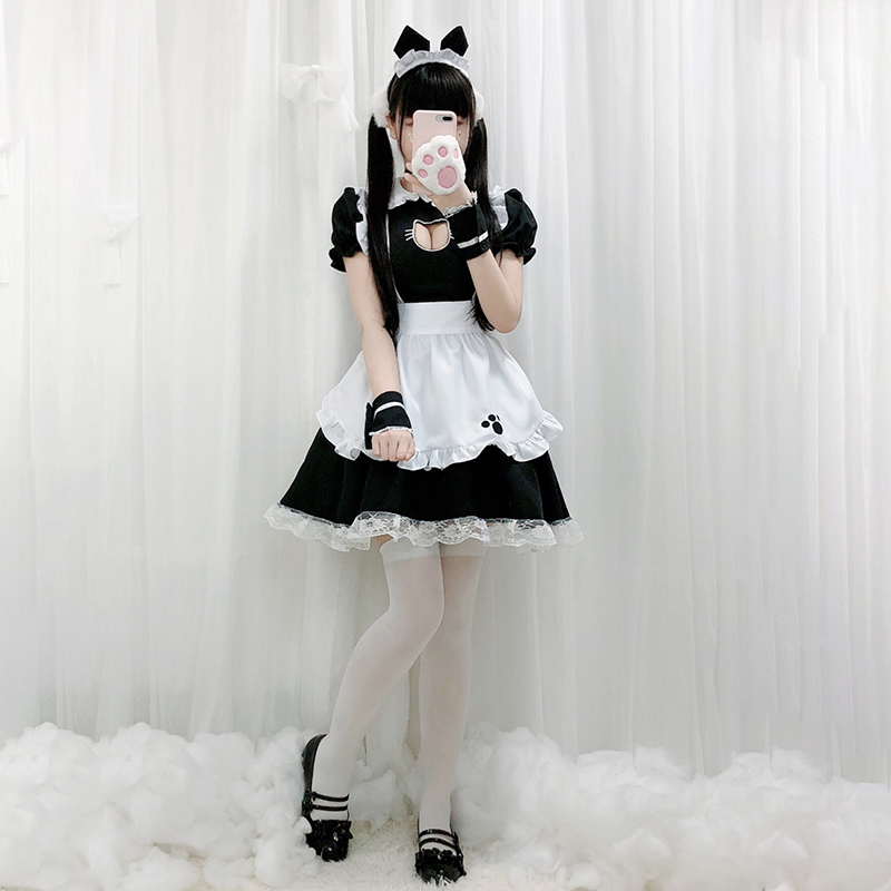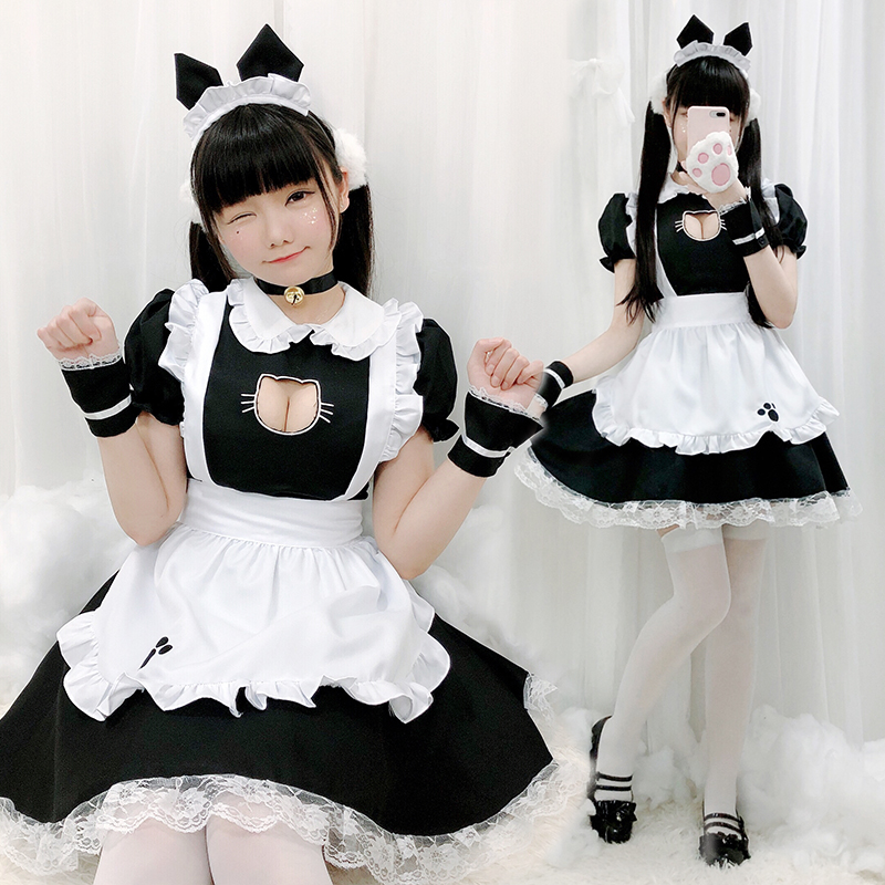 Soft sister cat maid cosplay clothing Japanese sexy black and white cos dress maid outfit Loli style dress