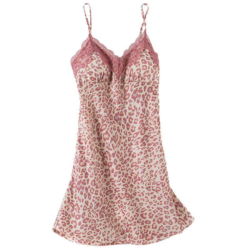 Seanne with chest pads big size Fat mm Sexy pyjamas seductive summer small breasts for fun BAO WEN Pink Sleeping Dress