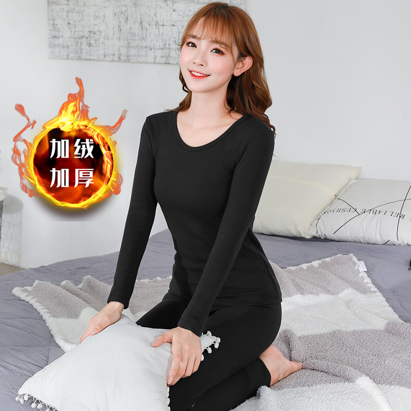 Warm Underwear Lady Gvet Thickened Pure Cotton Student Teen Cotton Sweatshirt Tight Fit Body Autumn Clothes Autumn Pants Suit Woman