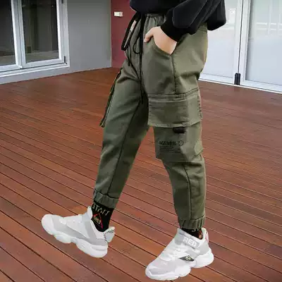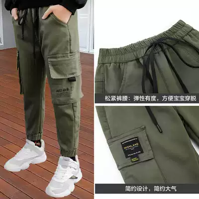 Children's clothing boy pants one-piece velvet overalls spring and autumn 2021 winter clothes middle and big children plus velvet padded casual pants