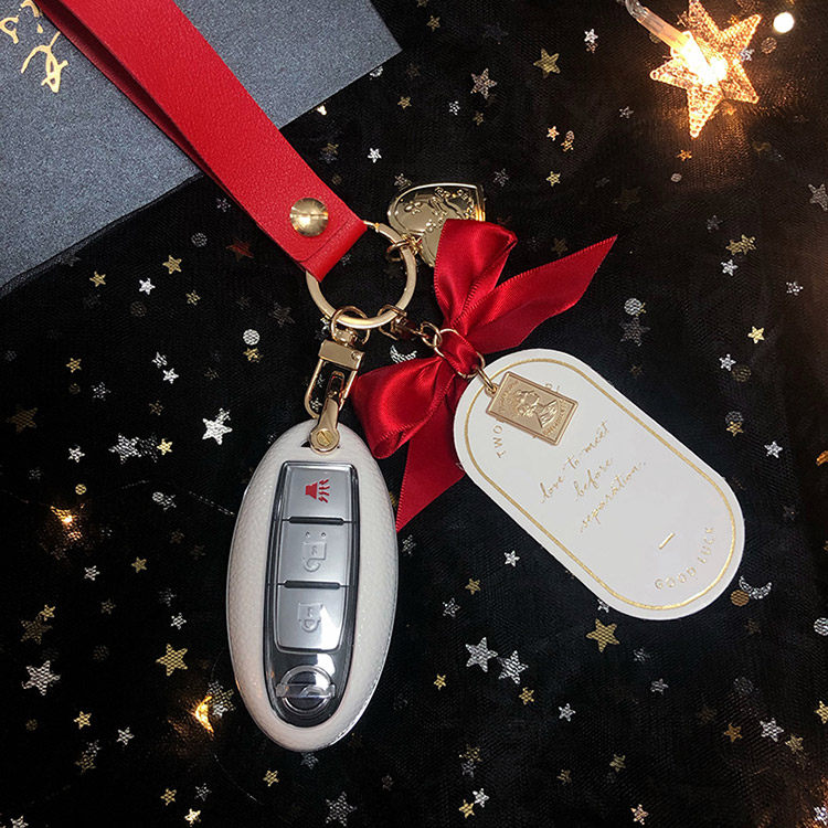 Nissan Single Shell Nissan Key Cover Braided Leather Rope White Shell Matcha Green Bow White Shell Retro Black Bow White Shell Advanced Gray Bow White Shell Black Forest Bow White Shell Limited