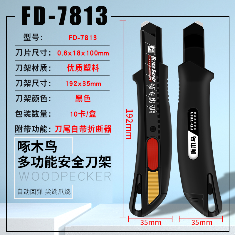 Woodpecker multifunctional utility knife holder FD-7813 large paper cutting wallpaper knife wallpaper safety knife thickening industry