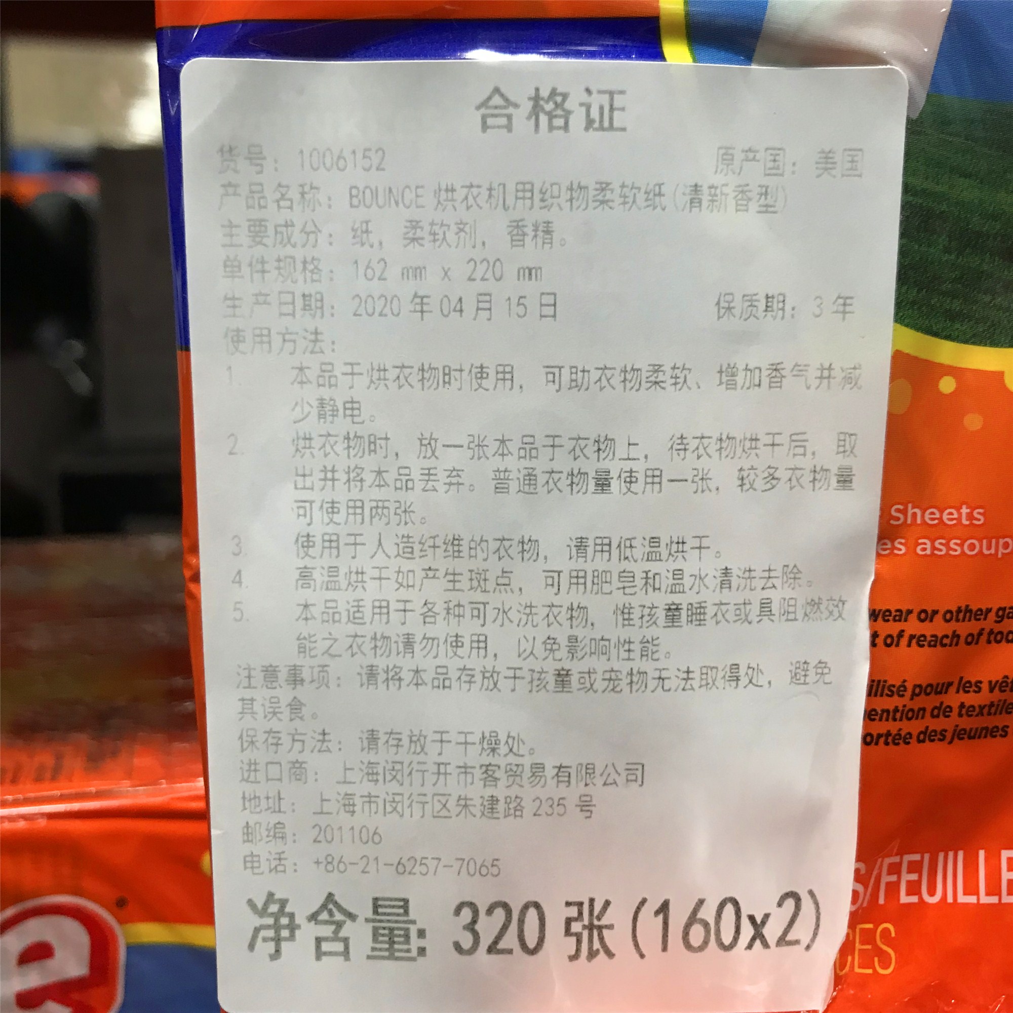 COSTCO USA Bounce Bunce Four-in-one soft and smooth fragrant paper drying machine antistatic and wrinkle-odour aromatic type