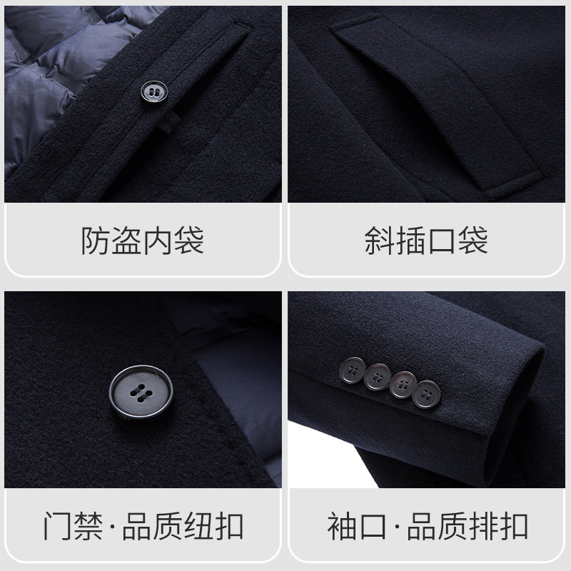 Coat YR88818 navy blue (cashmere wool material with detachable down inner lining) Collection and shopping cart 1 Collection and shopping cart 2 Collection and shopping cart 3 Collection and shopping cart 4