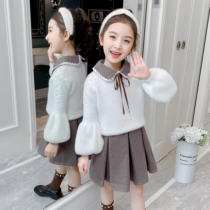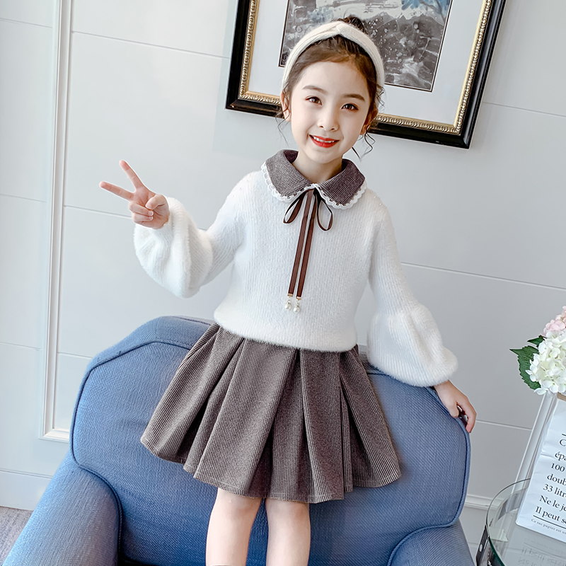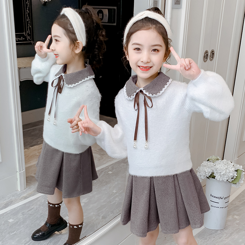 Girls dress autumn and winter 2021 Winter Dress New Style children princess dress winter dress plus velvet skirt winter