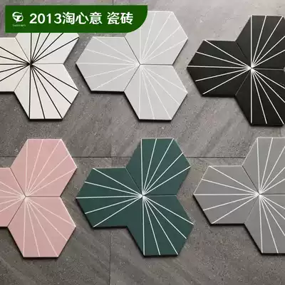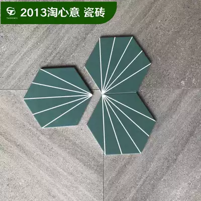 Nordic colored dark green line Ray Ray hexagonal tile tile pink small tile kitchen bathroom balcony non-slip floor tile