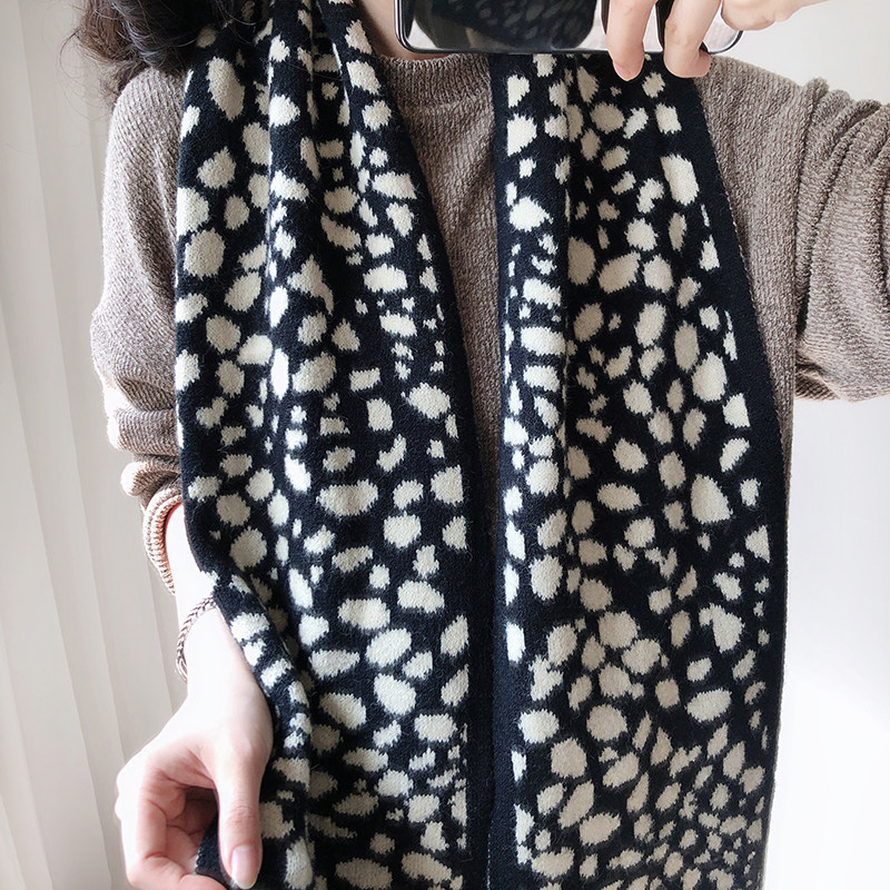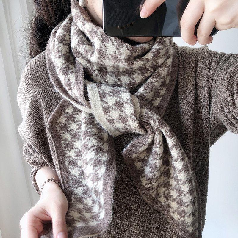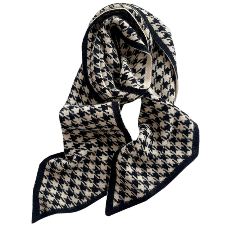 Scarf women's spring Korean version of wild mohair houndstooth wool yarn small scarf Autumn and winter tops narrow warm long neck