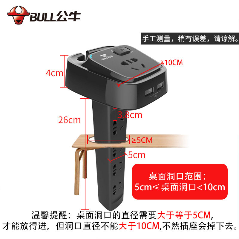 Bull desktop embedded socket table hole row plug USB plug board with line Office desktop multi-function connection extension cable