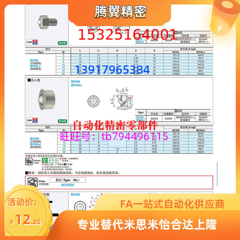 Replacement Mithmi BCHAJ7 5 9 11 15 18 30 30 Steel Ball Rollers Pressed Into Insert-Adhesive Type