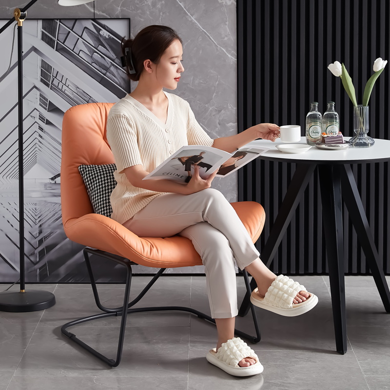Modern minimalist living room sofa chair back lazy leisure chair bedroom reading single small sofa wrought iron leather chair