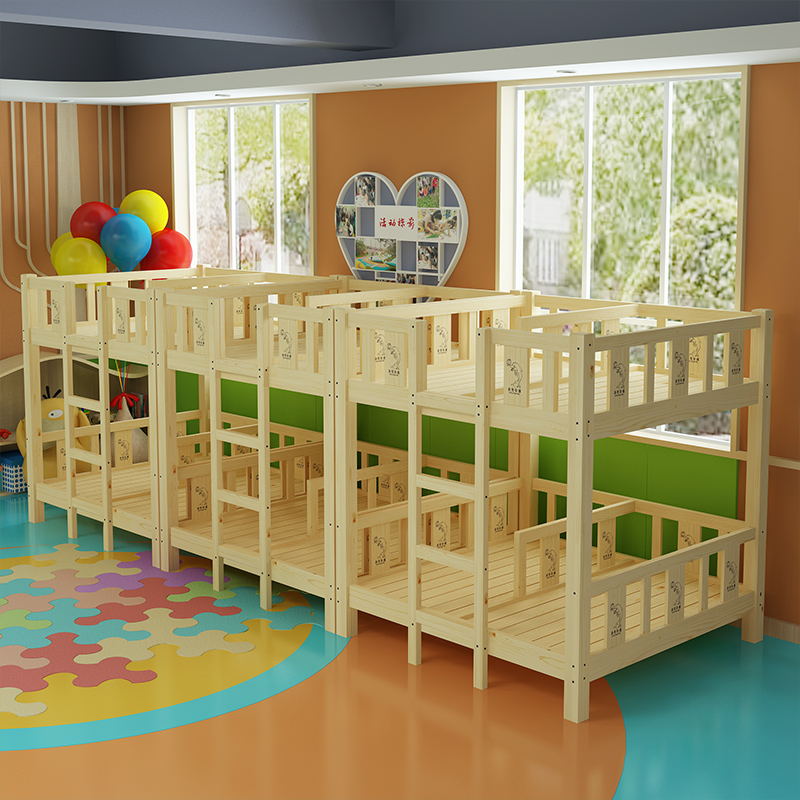 Kindergarten Solid Wood Bed Double Layer Up And Down Bunk Beds 4 High And Low Bed Children Afternoon Nap Bed Elementary School Student Pine Wood Lunch Too-bed-Taobao