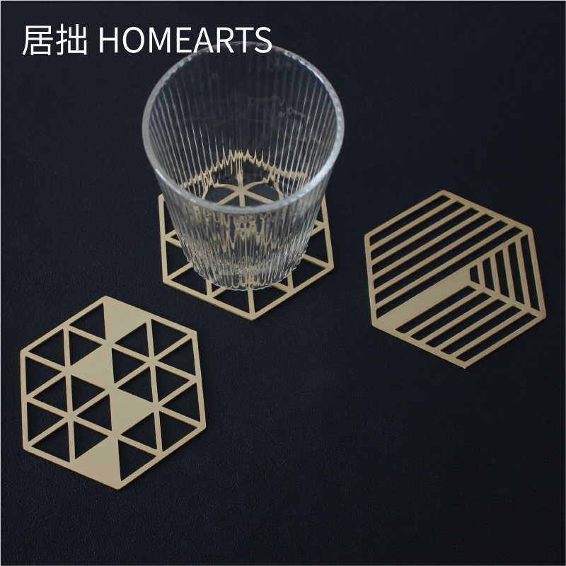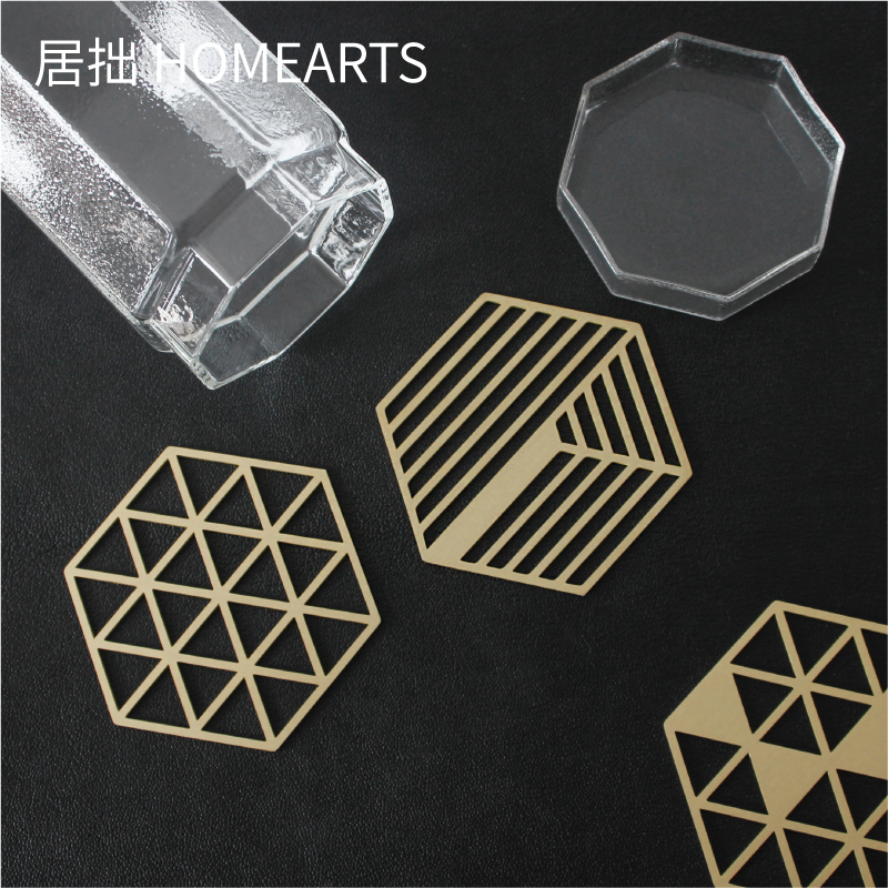 Nordic simple brass coaster Creative coffee cup teacup glass mat Home cafe desktop decoration decoration