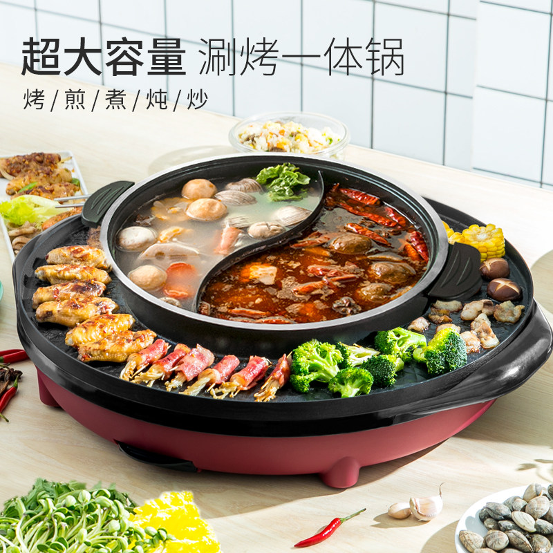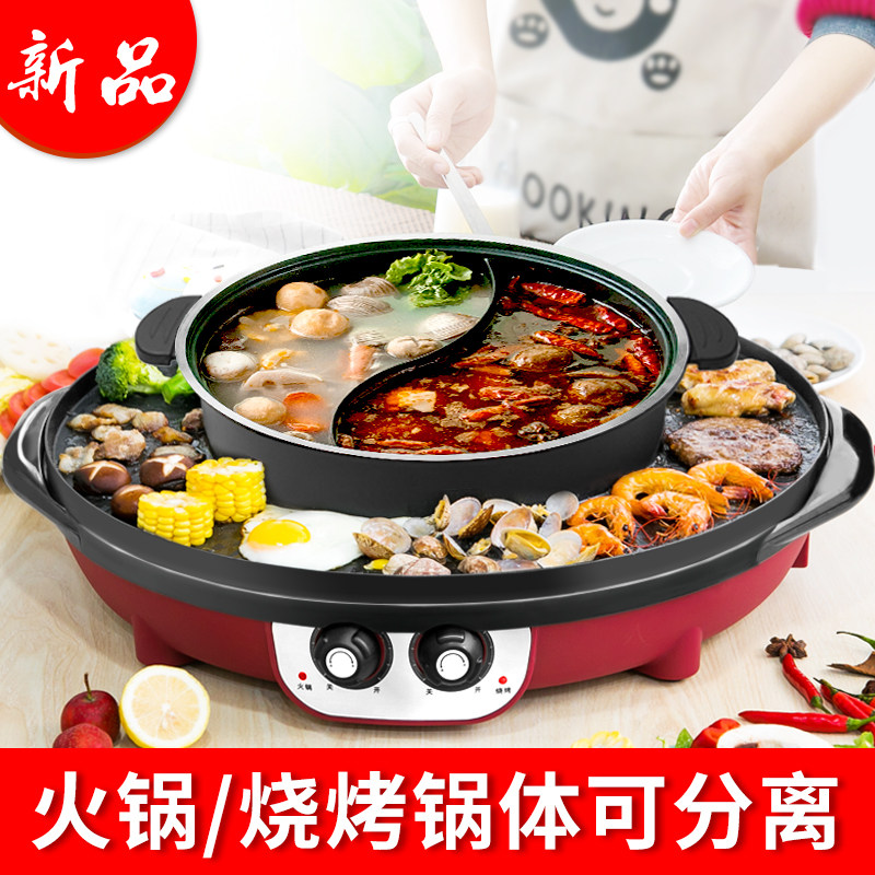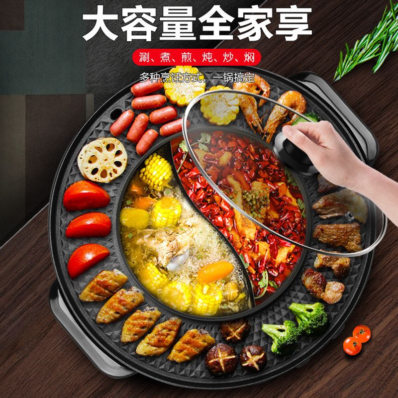 Hot pot barbecue one pot home oven grill plate electric baking tray multi-functional dual-purpose smokeless shabu-shabu machine Mandarin duck separation