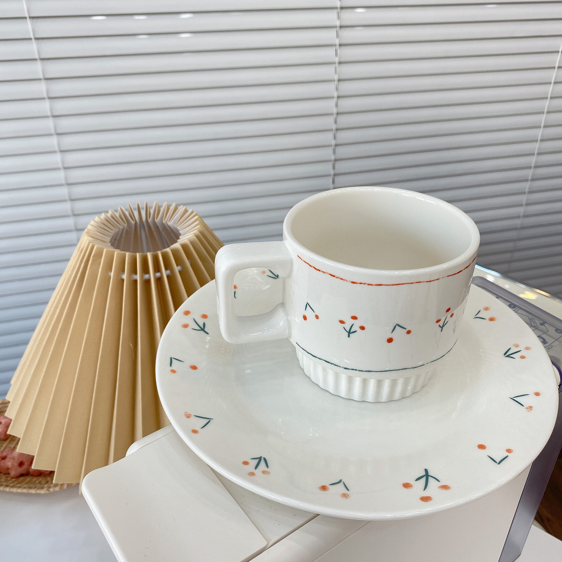 ns French girl heart flower coffee cup ceramic mug afternoon tea dessert household breakfast plate tableware retro