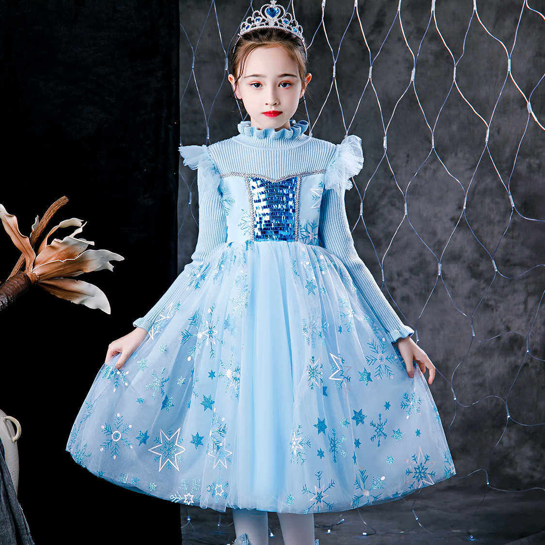 Girls 2021 Winter Kids Plus Fleece Frozen Dress Fall Winter Sweater Dress Aisha Princess Dress Skirt