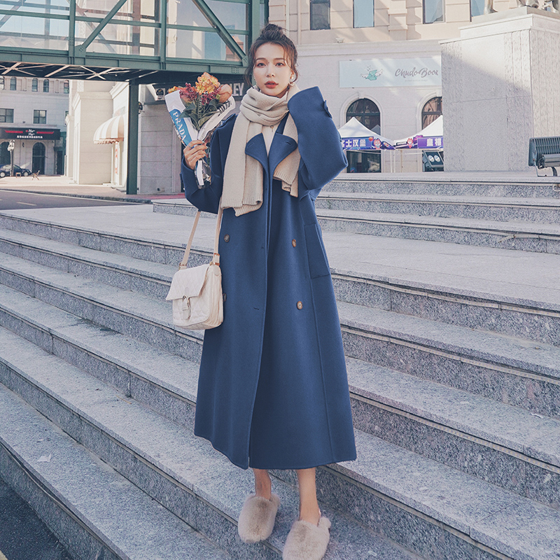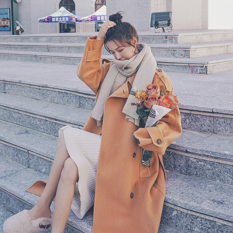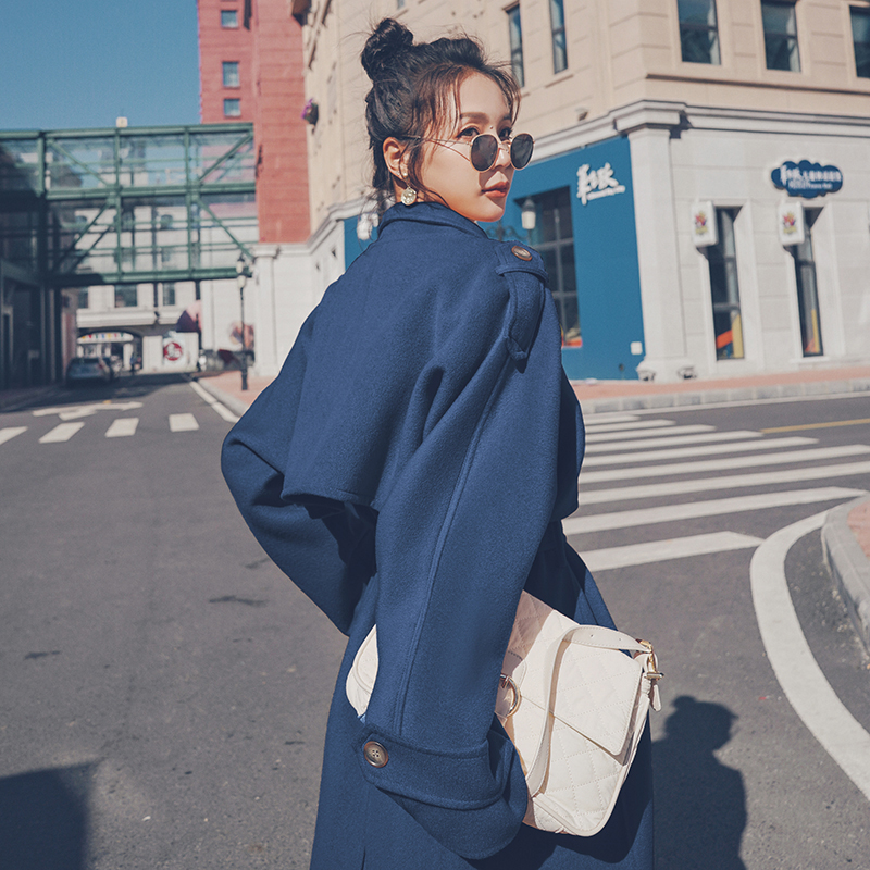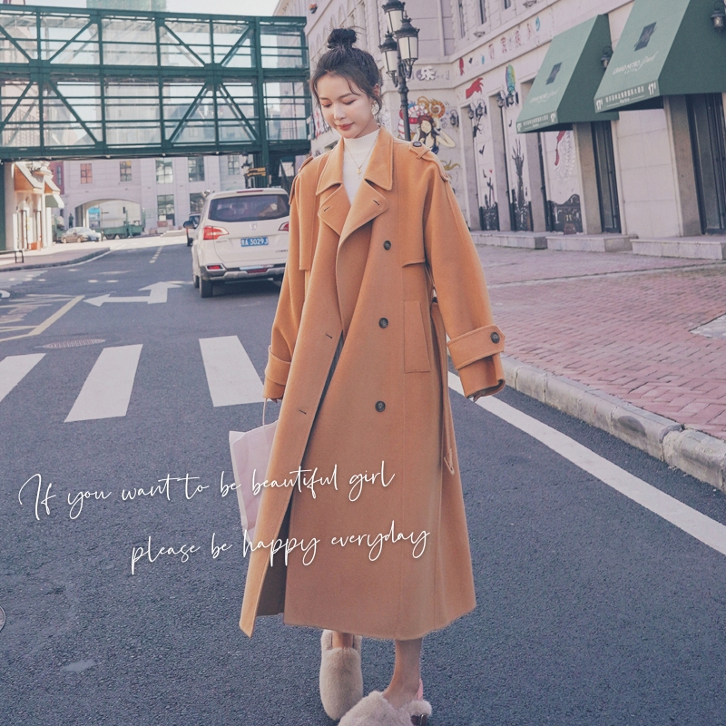 Hepburn trench coat women's mid-length version 2021 new autumn and winter temperament woolen Korean version loose fashion woolen coat