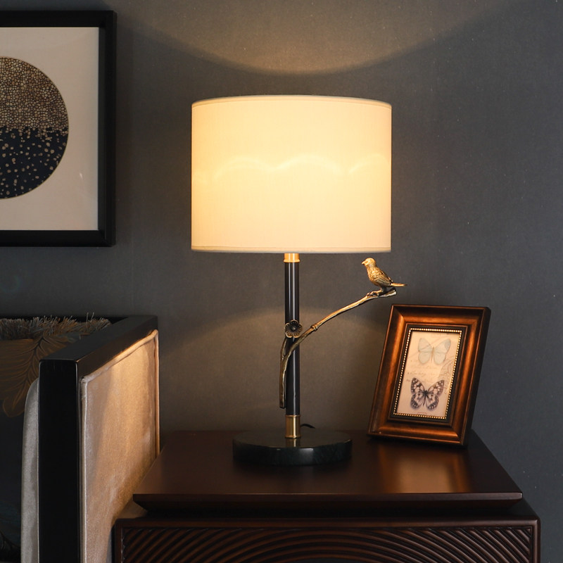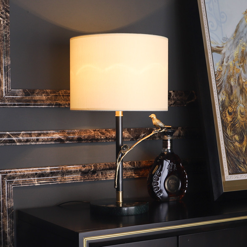 New Chinese all-bronze table lamp Living room Book room Bedroom Bedroom Headlights Classical light extravagant Chinese Wind Birds Zen Lanterns Zen