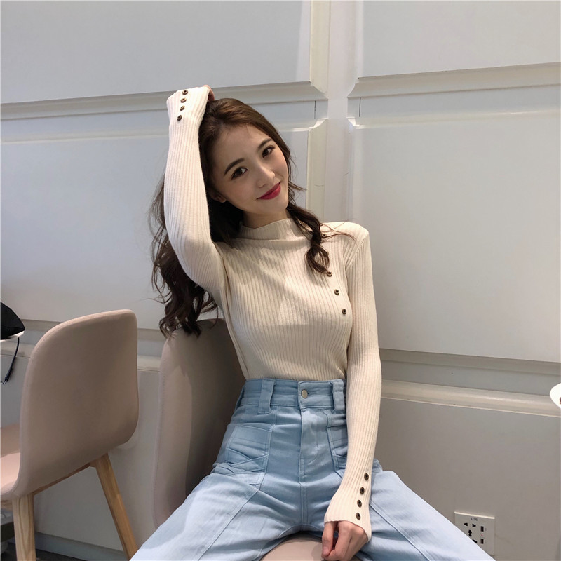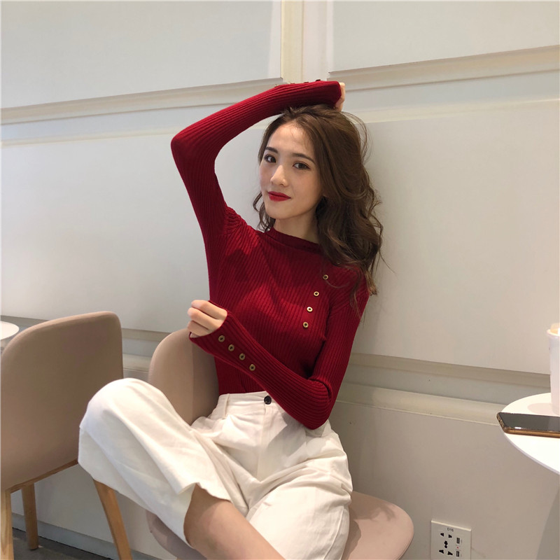 Inside lap knit undershirt woman autumn winter new half height collar body sweater net red polenta long sleeve needle woolen sweatshirt blouse